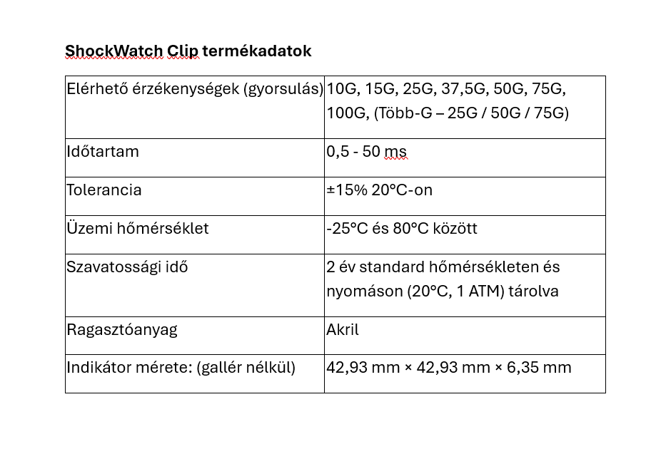 A ShockWatch Clip egy- vagy kétcsöves ütésjelzők biztonsági eszközök, amelyek élénkpiros színnel jelzik a helytelen kezelést. Ezek az ütésjelzők közvetlenül a termékekre szerelhetők, hogy jobban megértsék a tapasztalt körülményeket.