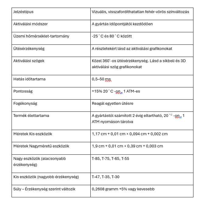 Ütésjelző indikátorok a szállítás vagy tárolás során bekövetkező - nem megengedett - ütés, ütközés, dobálás, rázkódásból adódó hatások kijelzésére szolgálnak. Segítségével megelőzhetőek a sérült termékek értékesítéséből, üzembehelyezéséből adódó károk.